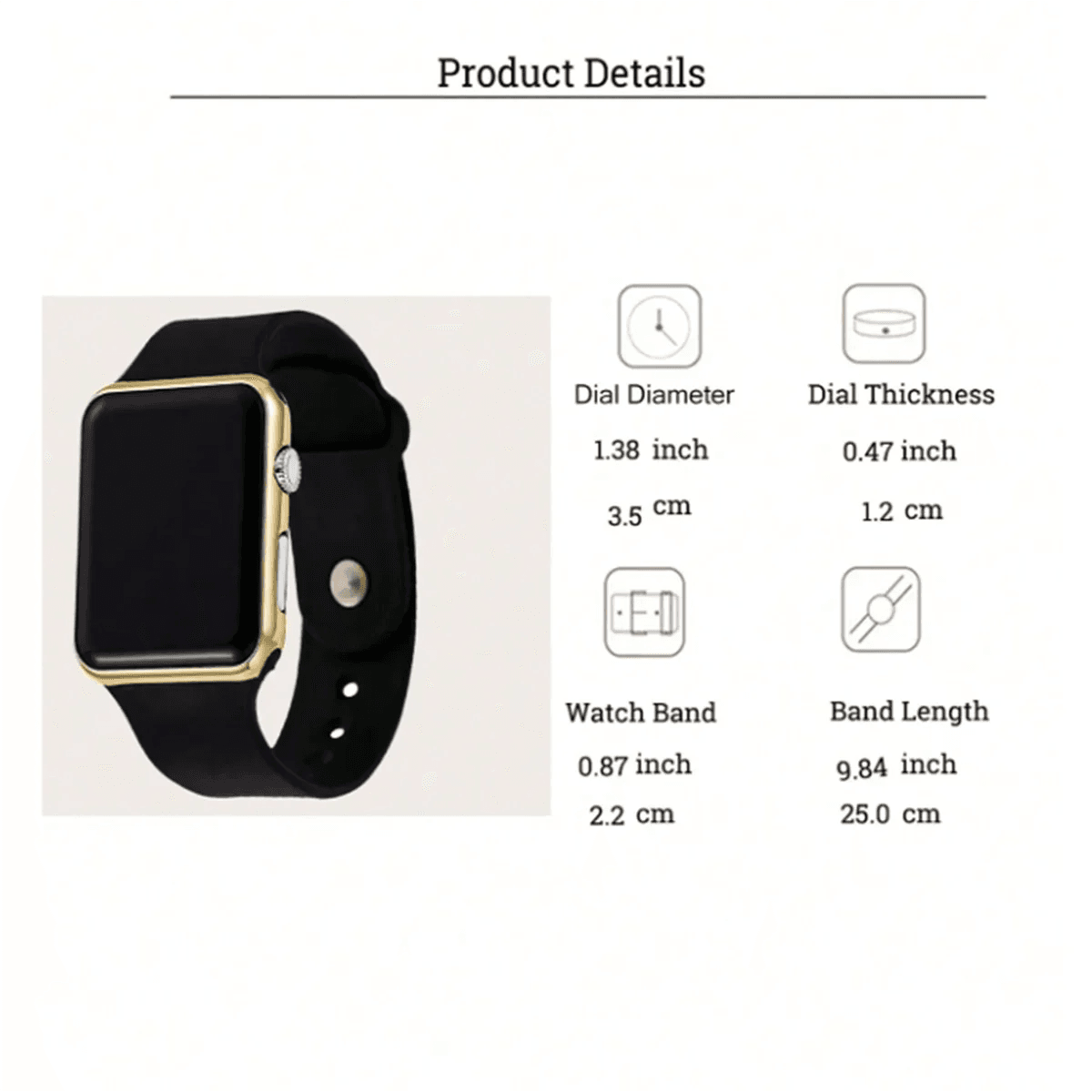 Designed for women, the watch includes a silicone band that is 250mm long and 22mm wide. With a digital movement and needle display, it combines functionality with modern aesthetics. Please note, it is not waterproof and should be kept away from excessive water exposure.