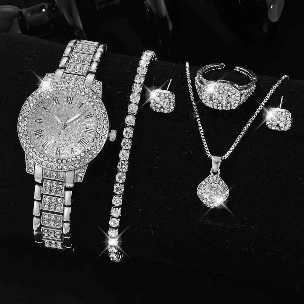 Silver Women's Watch Set - 6PCS Luxury Dial Quartz Jewelry Gift for Her
