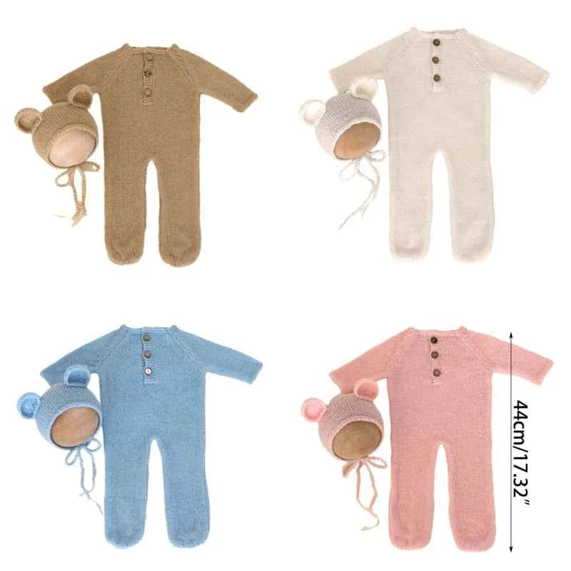 Baby Outfit Newborn Photography Props mohair Knitted Bear Rompers Footed Jumpsuit Hat 2pcs/Sets Photography Clothing Accessories