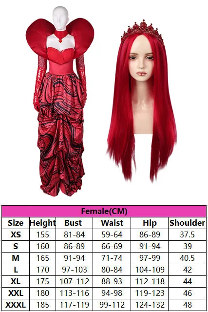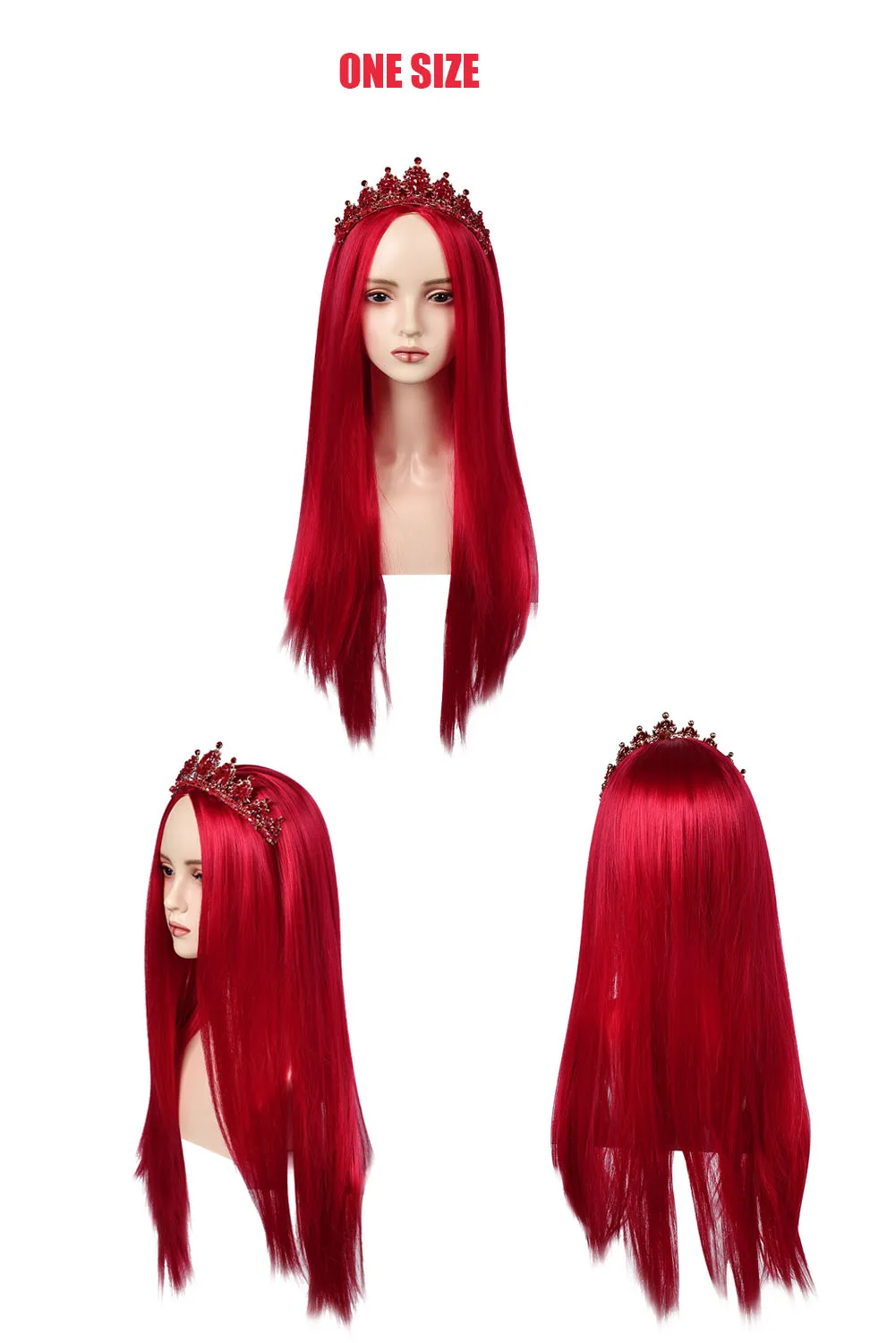 Descendants Fantasy Queen of Hearts Cosplay Costume Adult Women Red Dress Wig Headband Outfits Halloween Carnival Party Suit