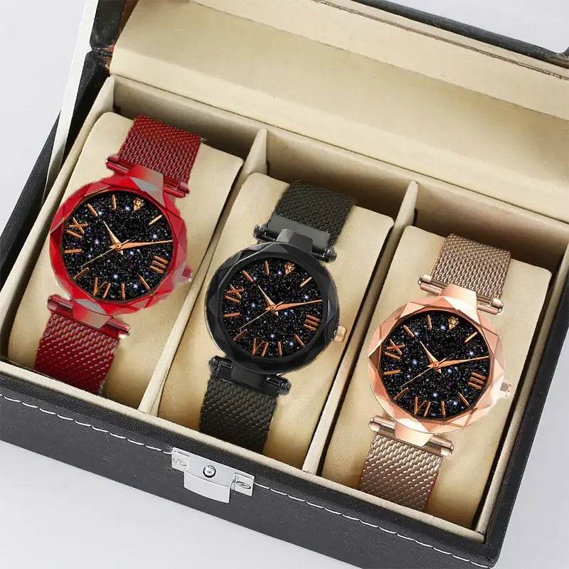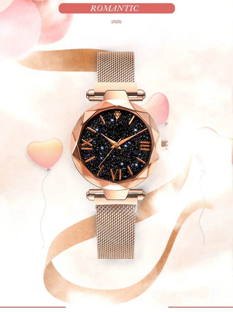 Luxury Women's Starry Sky Watch with Magnetic Mesh Belt Band - Fashion Dress Wristwatch for Women