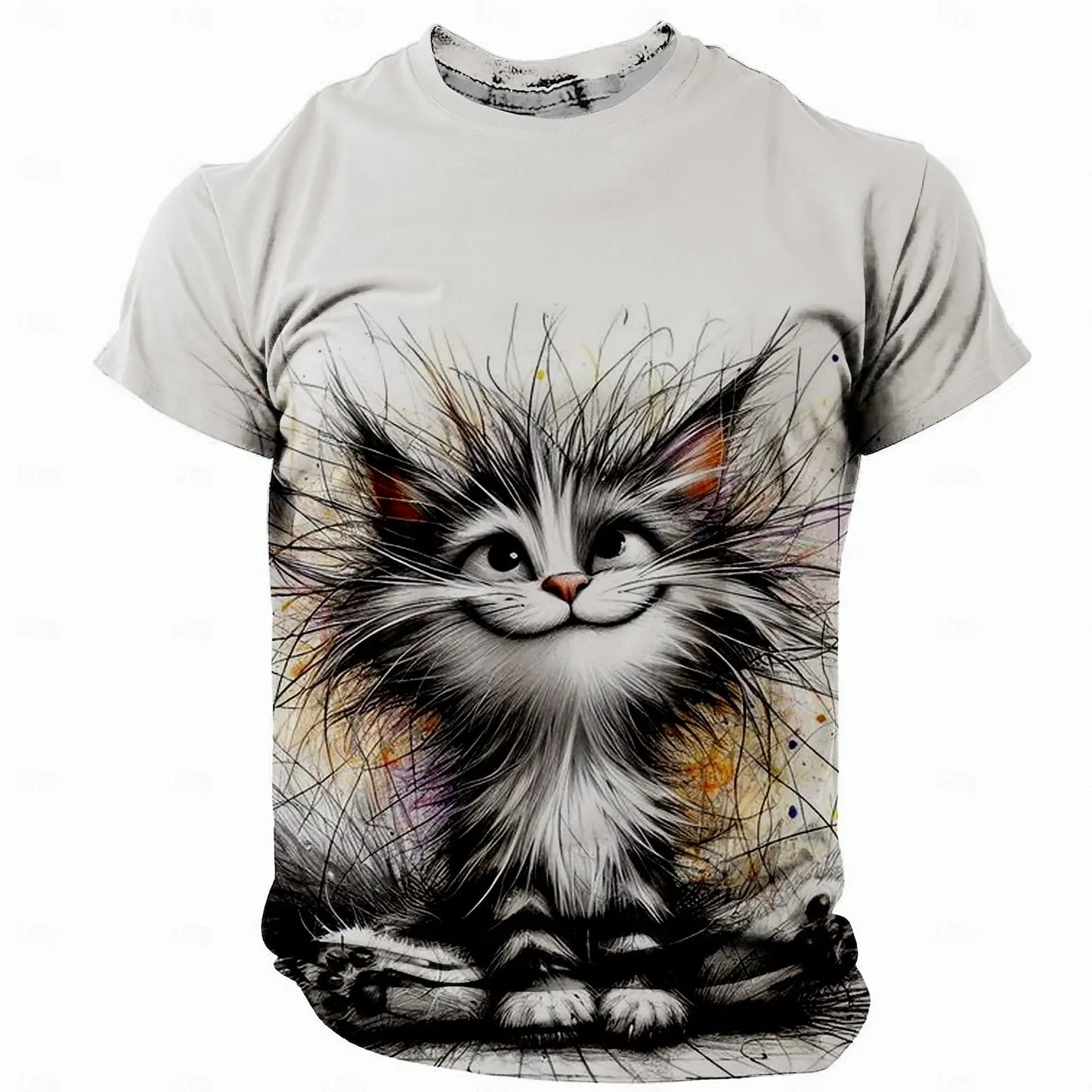 Men’s Funny Cat T-Shirt – 3D Print Crew Neck | Retro Vintage Short Sleeve for Spring & Summer Streetwear