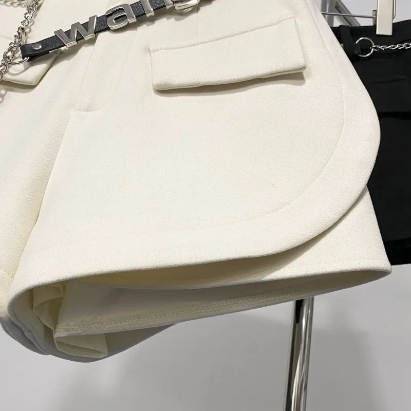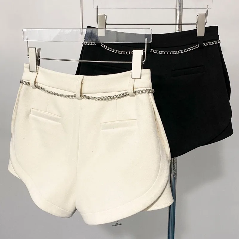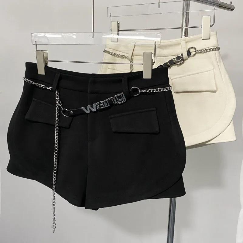 Pantalones Cortos De Mujer Patchwork Shorts for Women New Bottoms Letter Chain High Waist Slim Fit Korean Woolen Pants