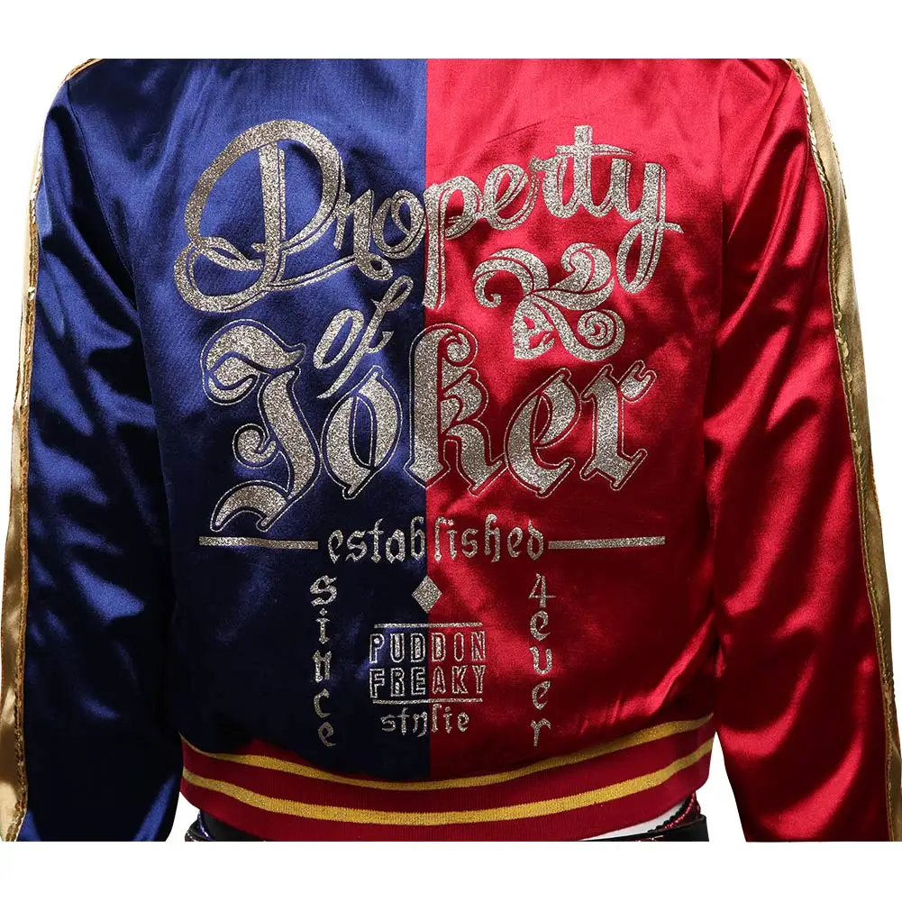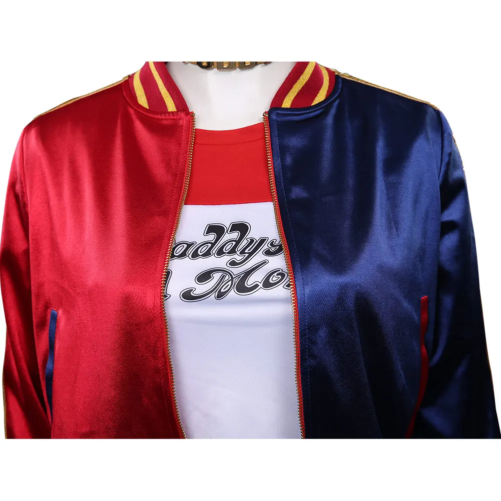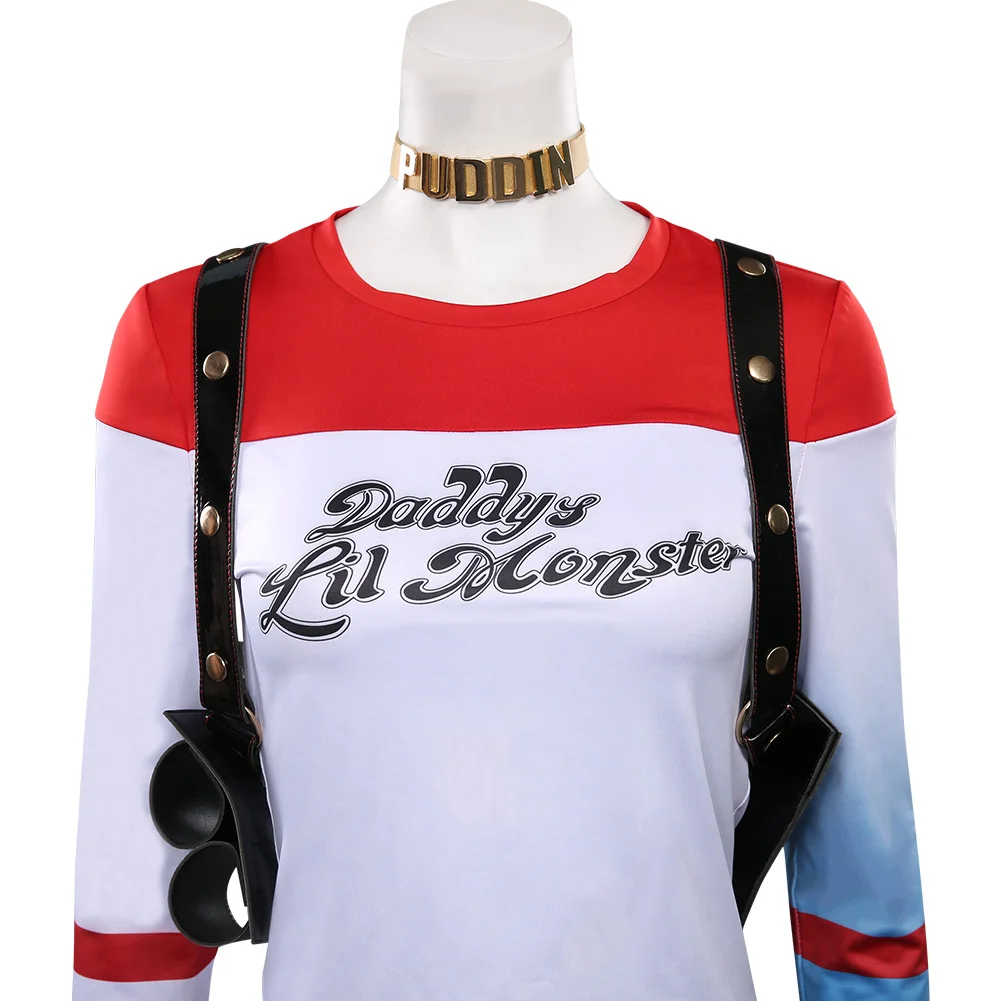 Quinzel Cosplay Costume Fantasia Super Villain Adult Women Coat Belt Neckband Roleplay Outfits Halloween Carnival Party Suit