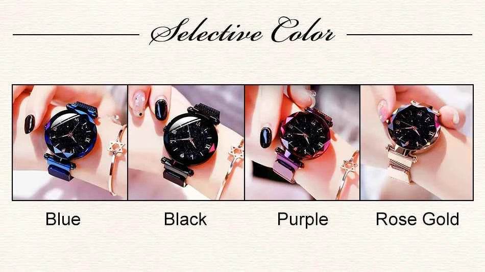 Introducing the Women's Starry Sky Watch, a stunning blend of elegance and style. This exquisite timepiece features a mesmerizing starry sky design, perfect for adding a touch of glamour to any outfit.